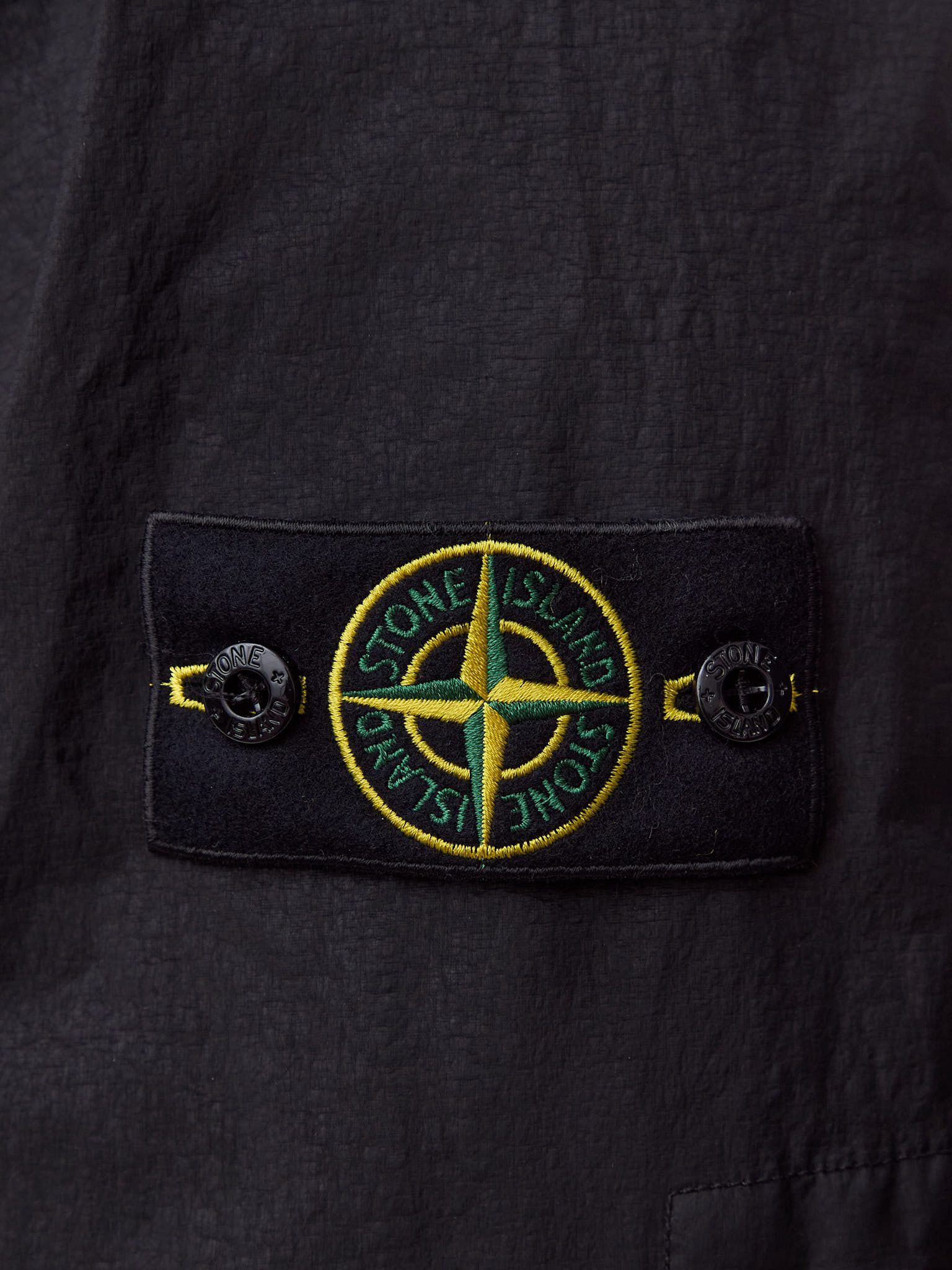 Технология garment dyeing придаёт ткани глубокий, насыщенный цвет и подчёркивает фирменный характер Stone Island, а специальная anti-drop обработка усиливает водоотталкивающие свойства материала.