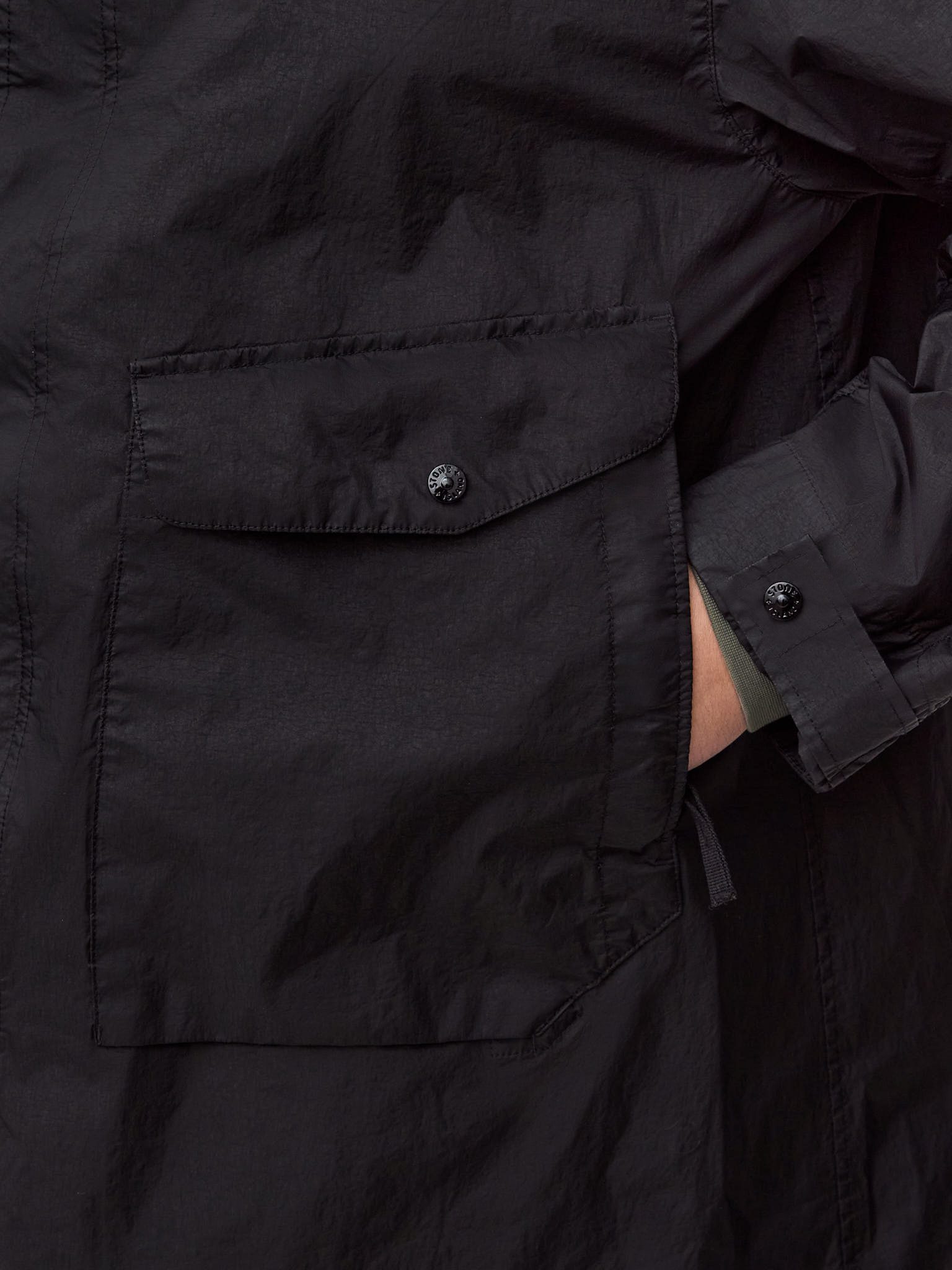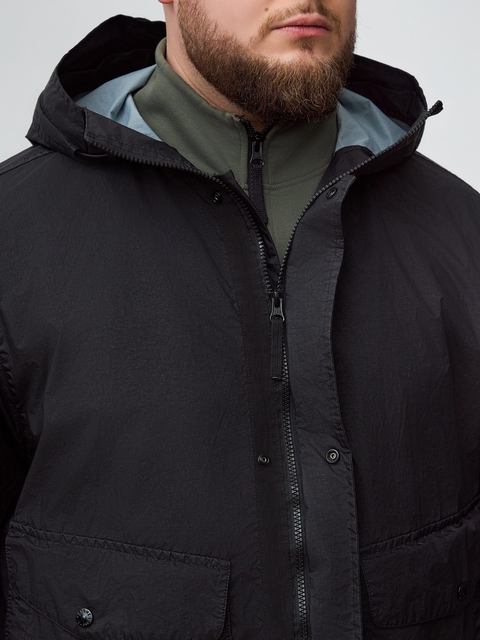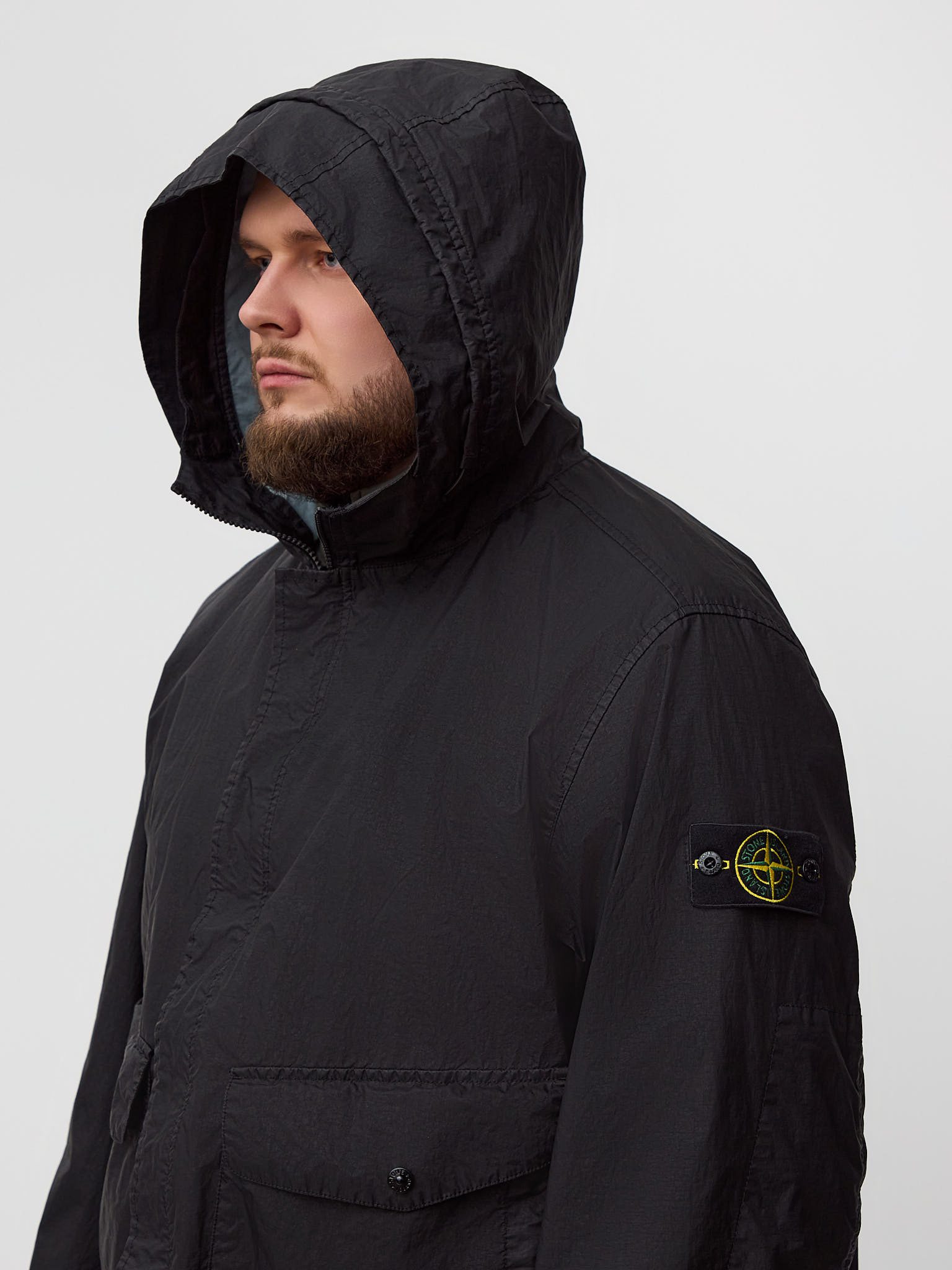 Плащ дополнен функциональными карманами, надёжной двухсторонней молнией, регулируемыми элементами и культовым патчем Stone Island на рукаве. Лёгкий вес, практичность и минималистичный дизайн делают модель универсальным решением для повседневного городского гардероба и межсезонья.