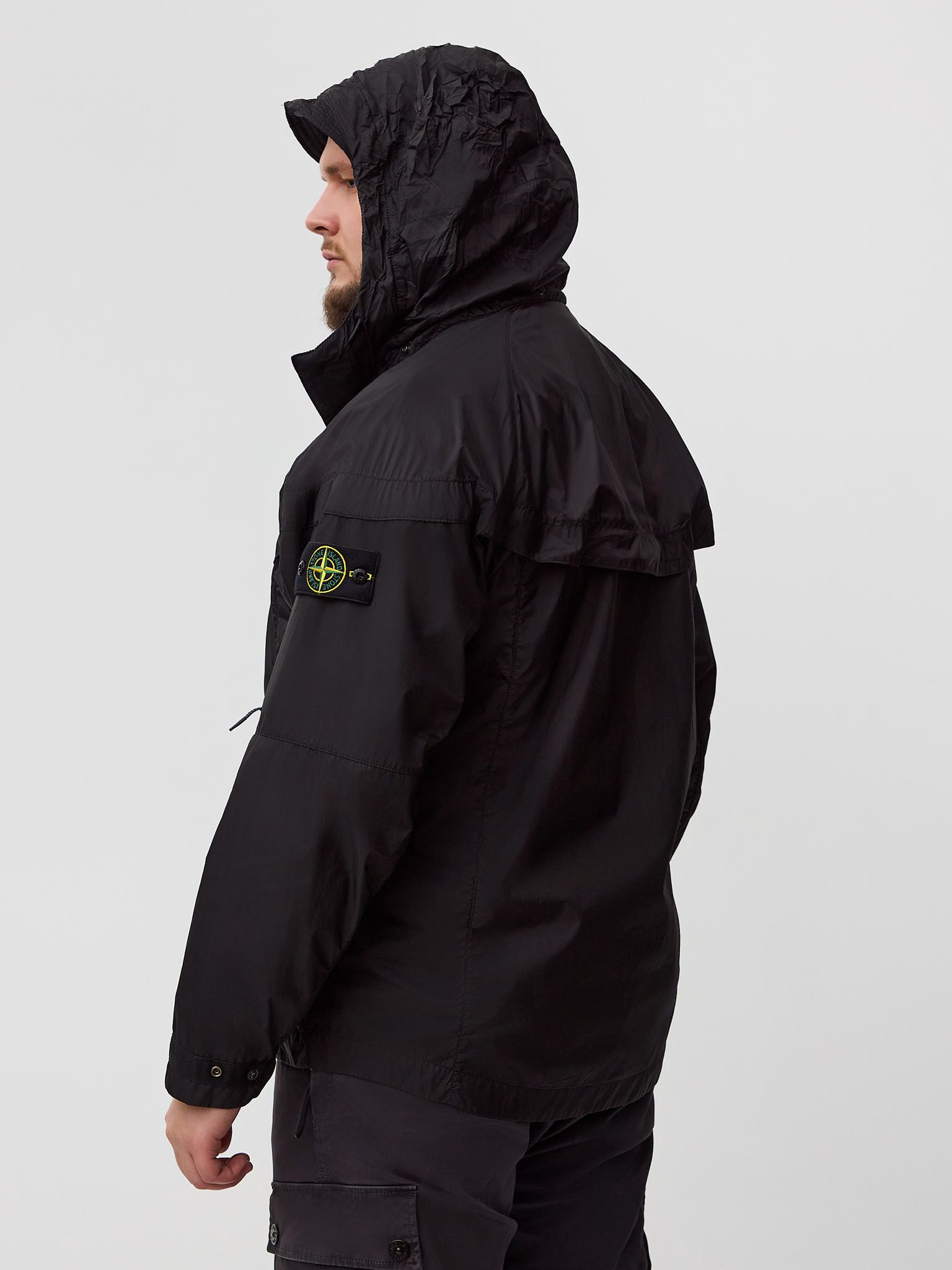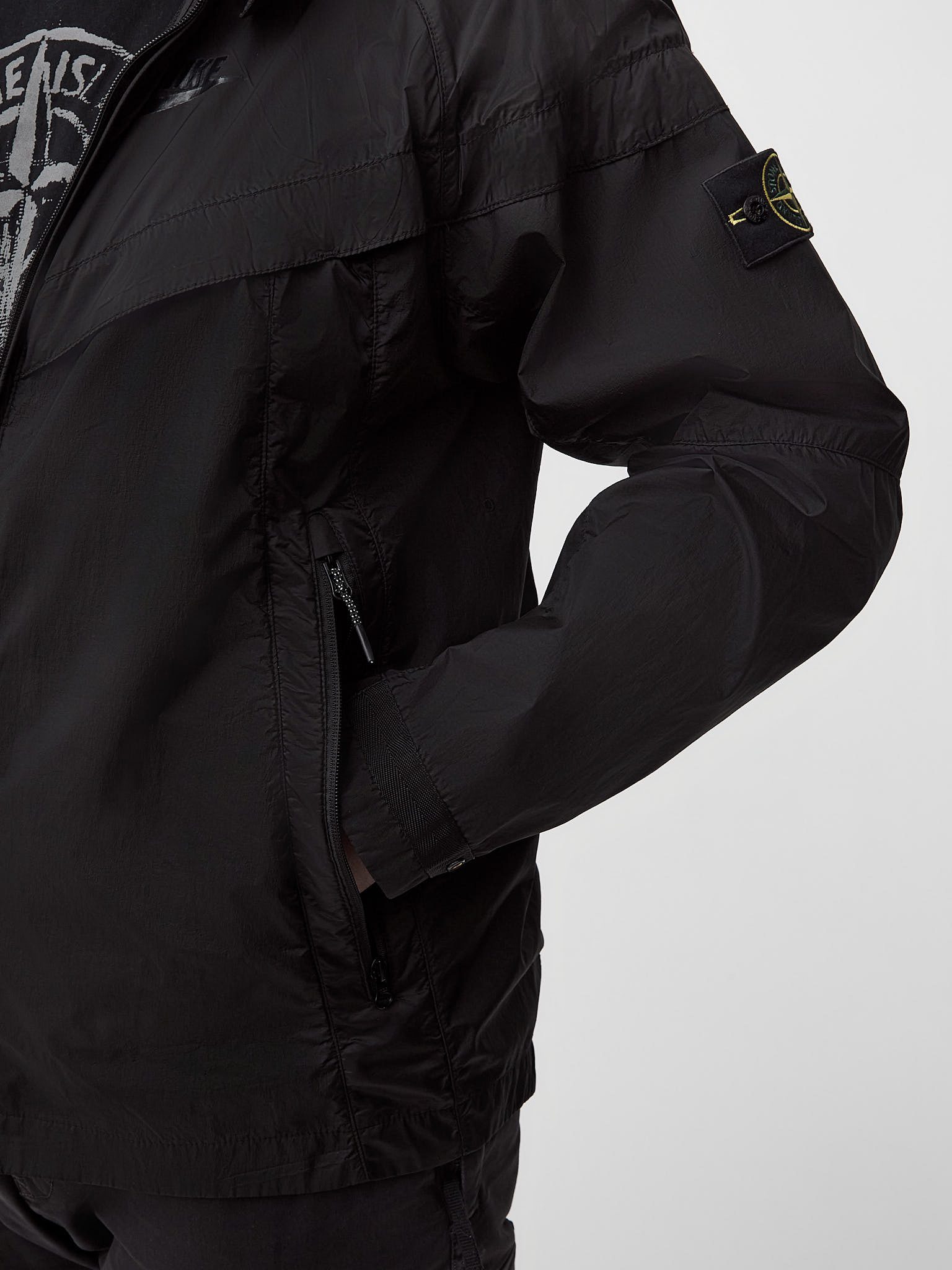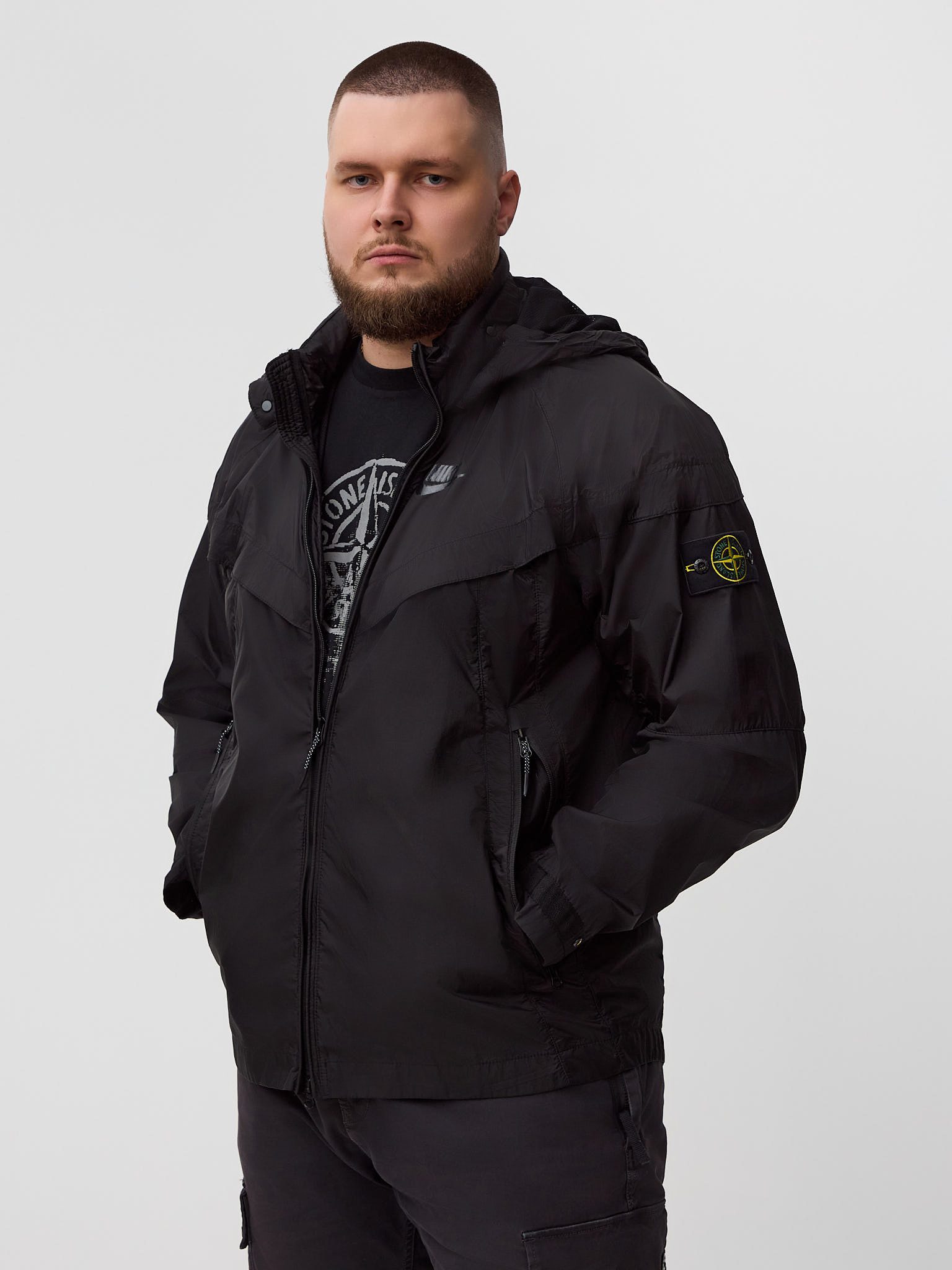 сочетает спортивное наследие Nike и инновационные разработки Stone Island, предлагая функциональное решение для повседневной носки в межсезонье. Модель выполнена из лёгкого высокопрочного нейлона, обеспечивающего защиту от ветра и лёгких осадков при сохранении комфорта и воздухопроницаемости.