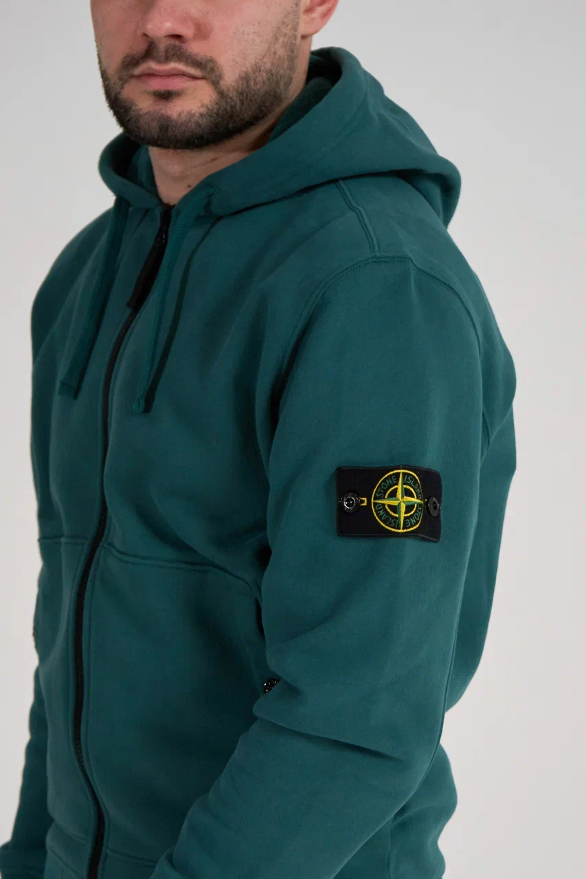 Зип худи Stone Island темно-зеленая 61620